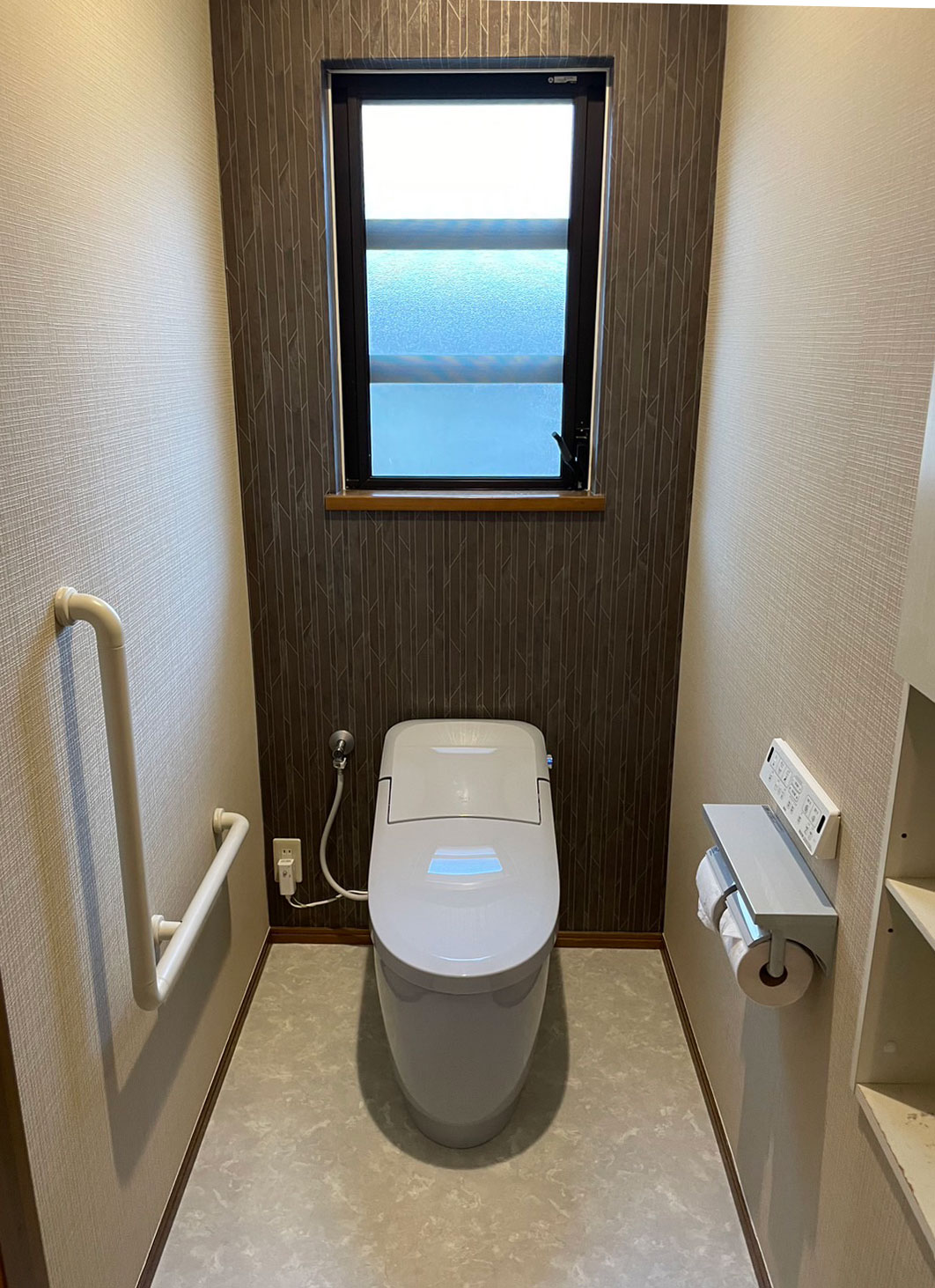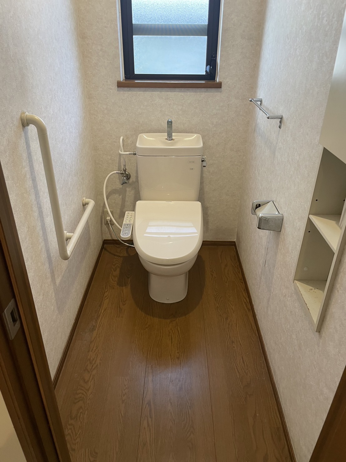 手洗いタンクは撤去してタンクレスタイプへ変更。室内空間を広くなるよう圧迫感のないプレアスLSを設置しました。