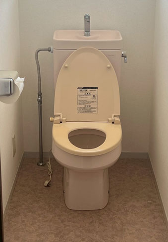 古い設備でトイレ洗浄水量が多く、流れる音が大きいのが悩みでした。
