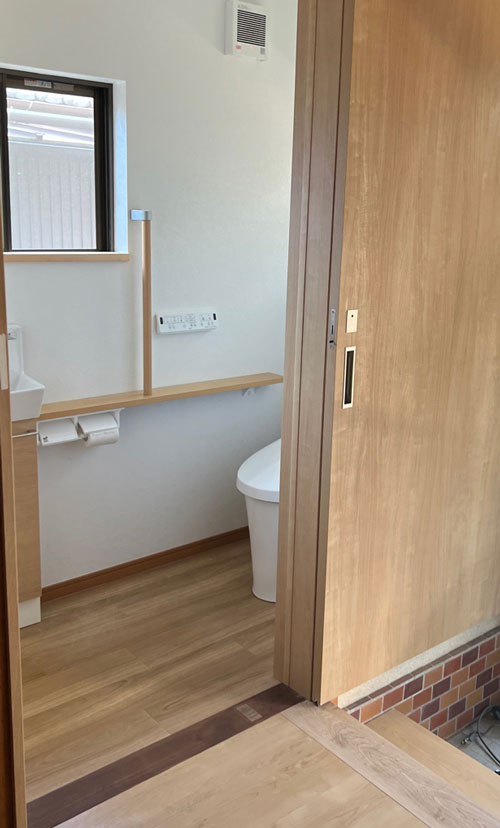 入口を引き戸へ変更して車いすが入れる幅へ拡張しています。